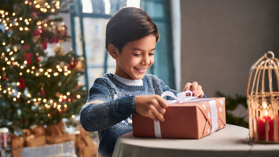 Unwrapping Joy: The Magic of a Boy Opening a Christmas Gift