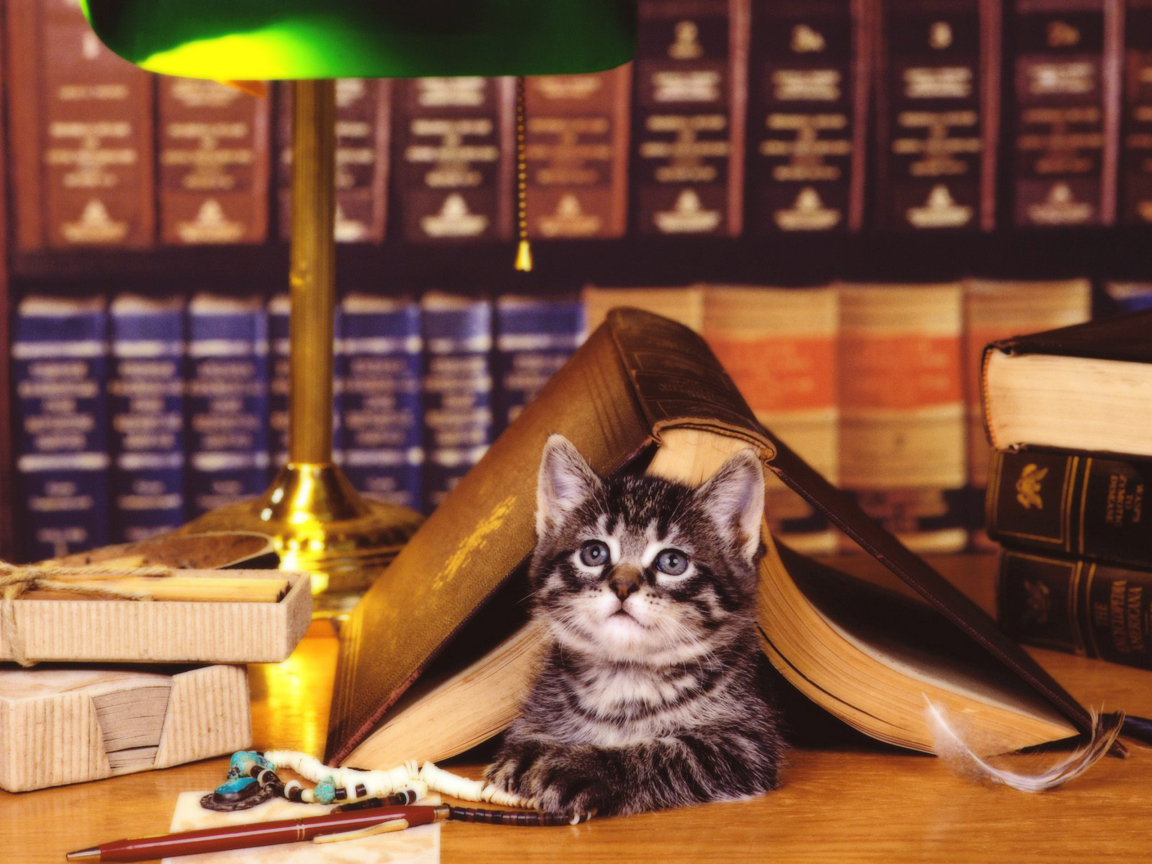 Embrace the charm of this delightful scene by incorporating the image of a cat under the books into your digital space. Whether you're a cat lover or simply appreciate heartwarming moments, this image is sure to bring joy to your day.