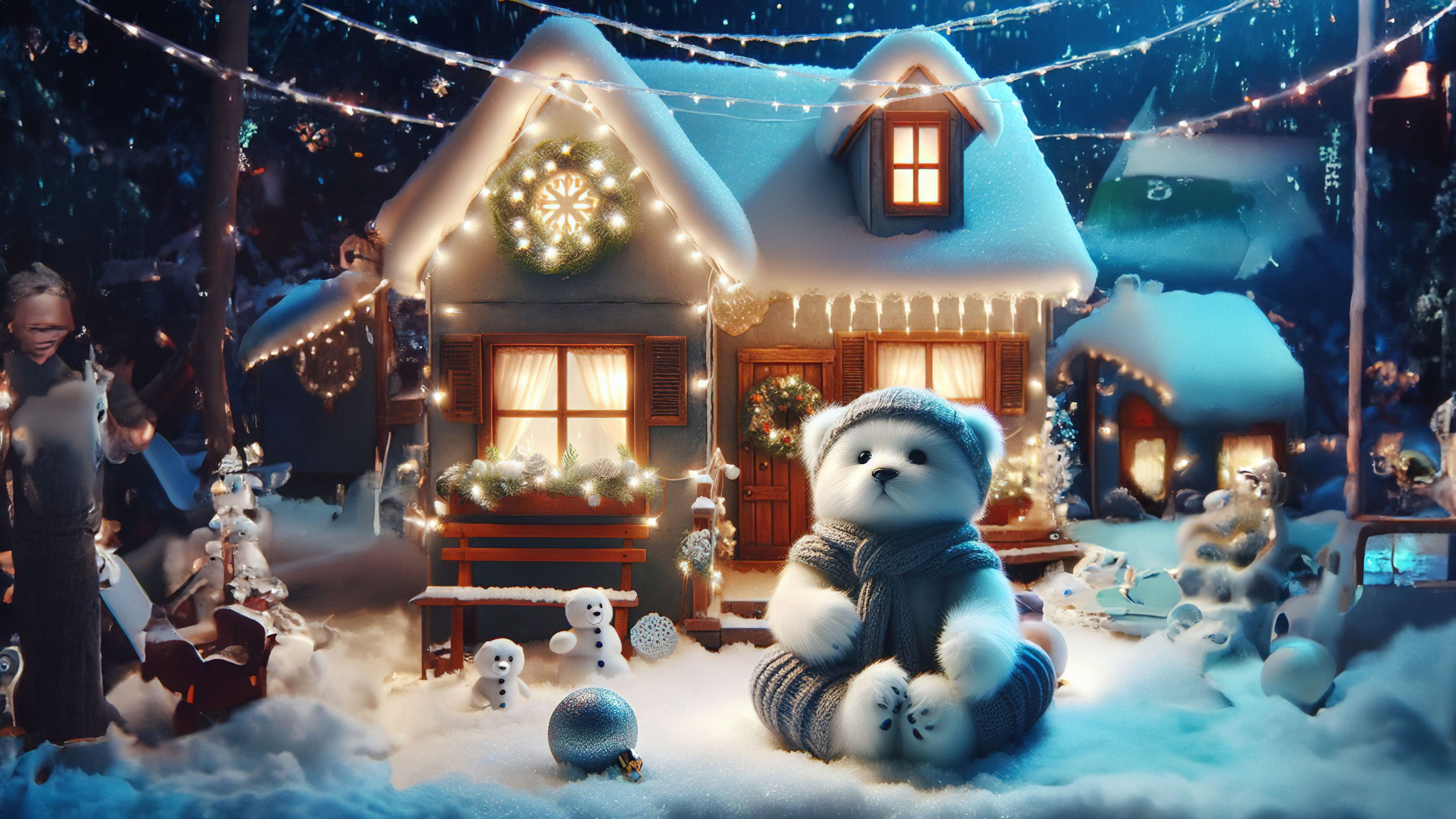 Immerse yourself in the enchantment of twinkling lights and cozy celebrations that surround the cute white bear. This article celebrates the soft illumination, the festive decorations, and the overall sense of magic and charm that comes with the twinkling lights and cozy celebrations, turning the night into an adorable winter wonderland.
