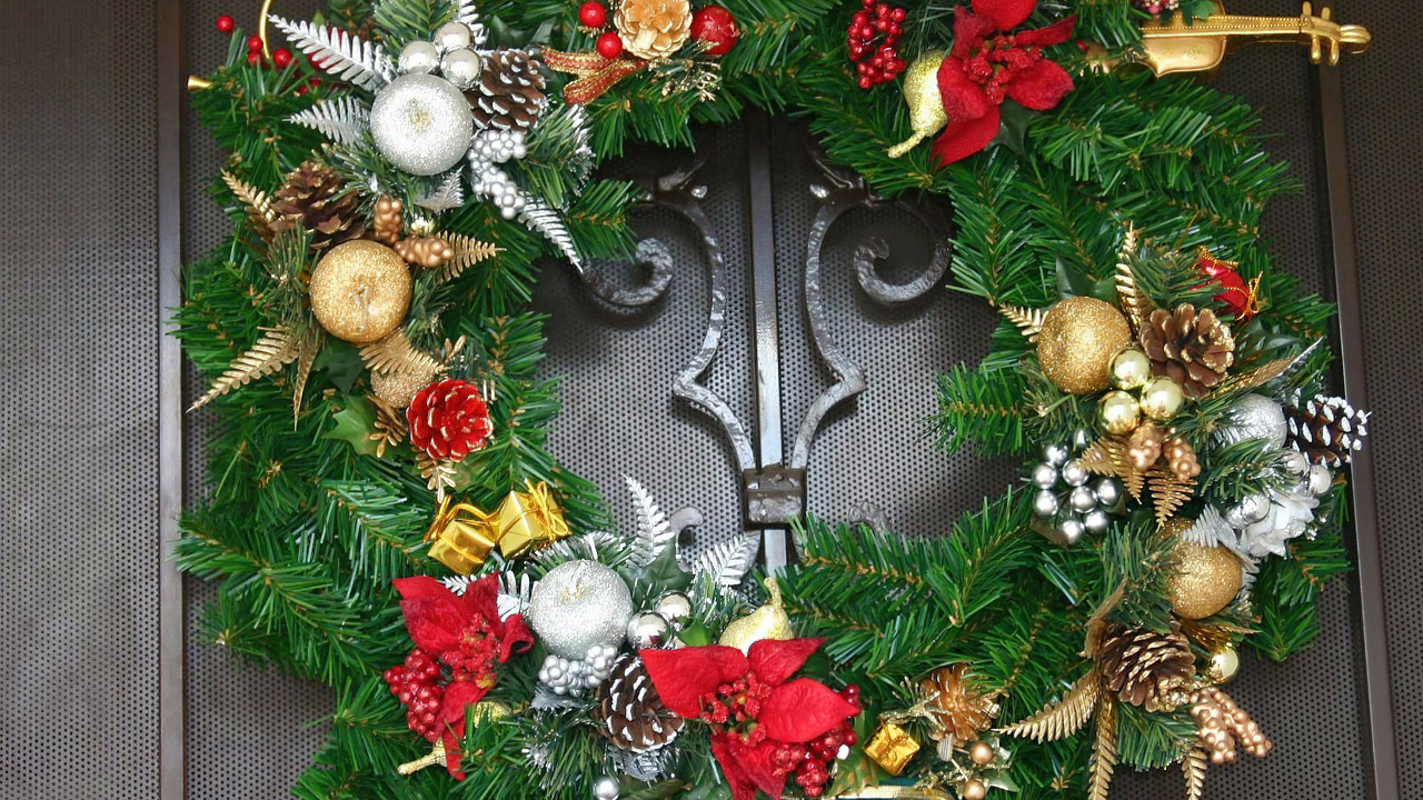 Relive the classic charm and timeless beauty of Christmas with our wallpaper collection. The scenes highlight a wreath on the door, exuding festive elegance and the joyous spirit of the season. Each image becomes a snapshot of the holiday allure brought to life by the classic charm and timeless beauty of a Christmas wreath.