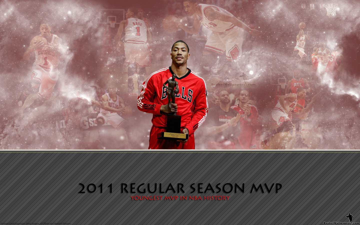 The wallpaper commemorates Derrick Rose's monumental achievement in winning the MVP award. The images encapsulate the essence of a season marked by unparalleled skill, determination, and excellence, showcasing Rose's journey to the pinnacle of individual success in basketball.