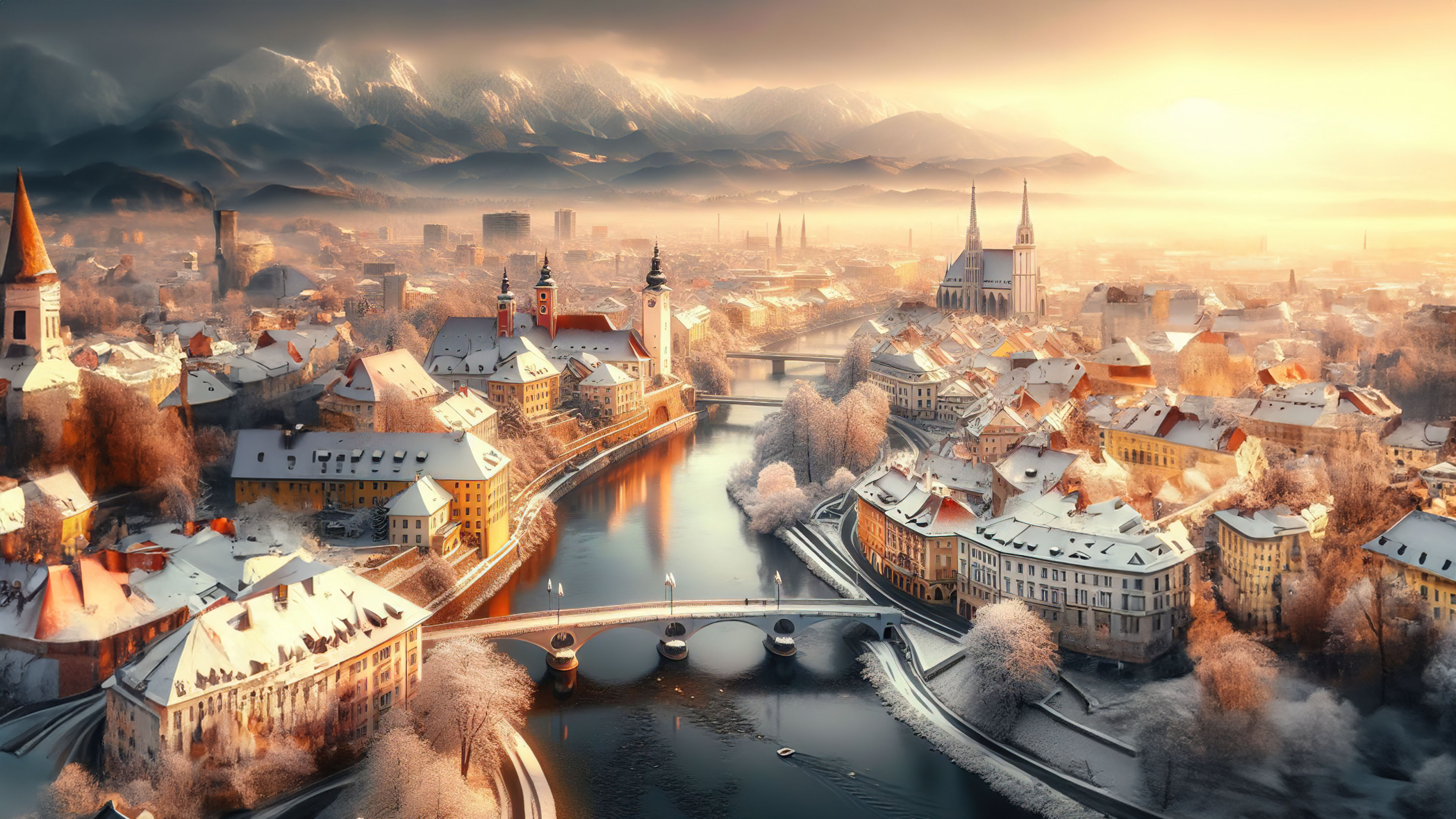 Wander through the enchanting streets of an old city that seems frozen in time. As winter arrives, the cityscape transforms into a nostalgic scene, inviting you to step back and experience the elegance of days gone by.