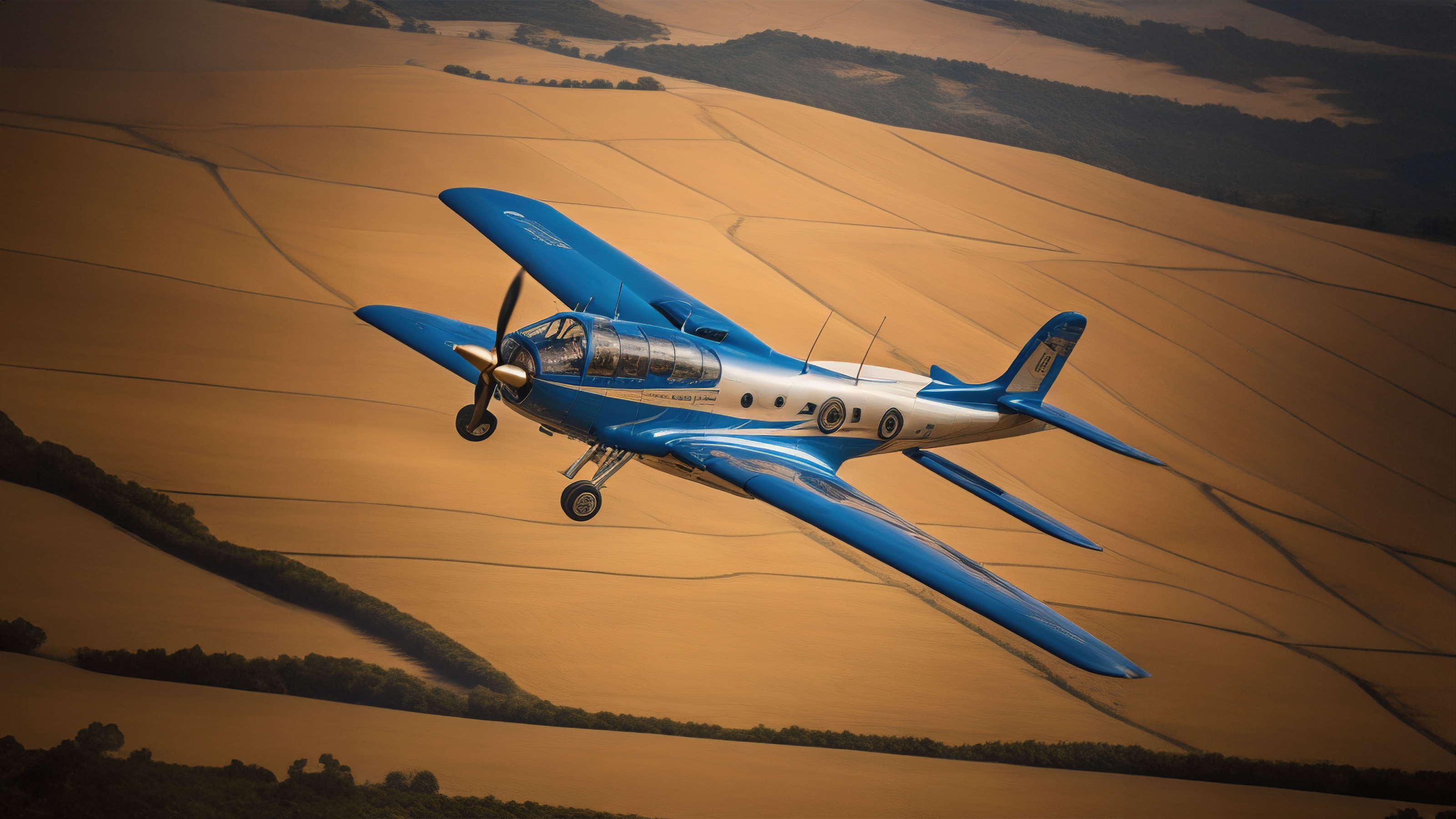 Admire the beauty of flying machinery against a backdrop of vast, golden fields, demonstrating the marvel of human ingenuity and the allure of exploration.