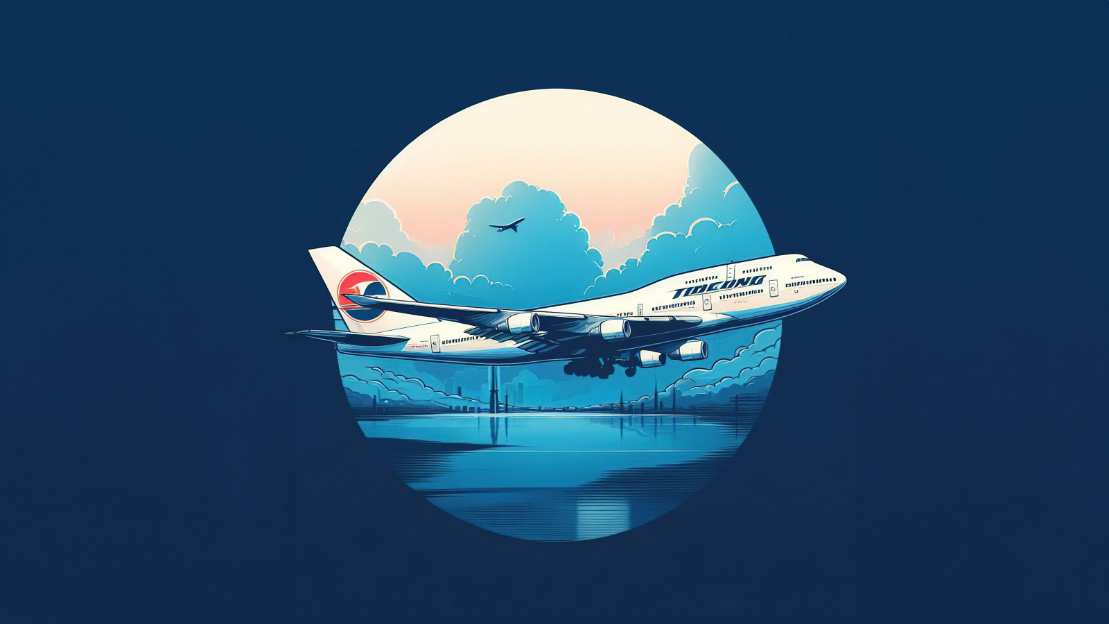 This wallpaper is an ideal choice for those who appreciate the beauty of aviation and artistic illustrations. The serene backdrop adds a soothing ambiance to your desktop or device screen, making it a perfect addition to your wallpaper collection.