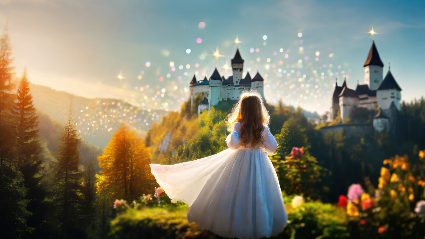 Deep within the fairytale forest lies an enchanted castle that sparkles with light and wonder. A young princess, full of curiosity and hope, embarks on a journey to uncover its secrets.