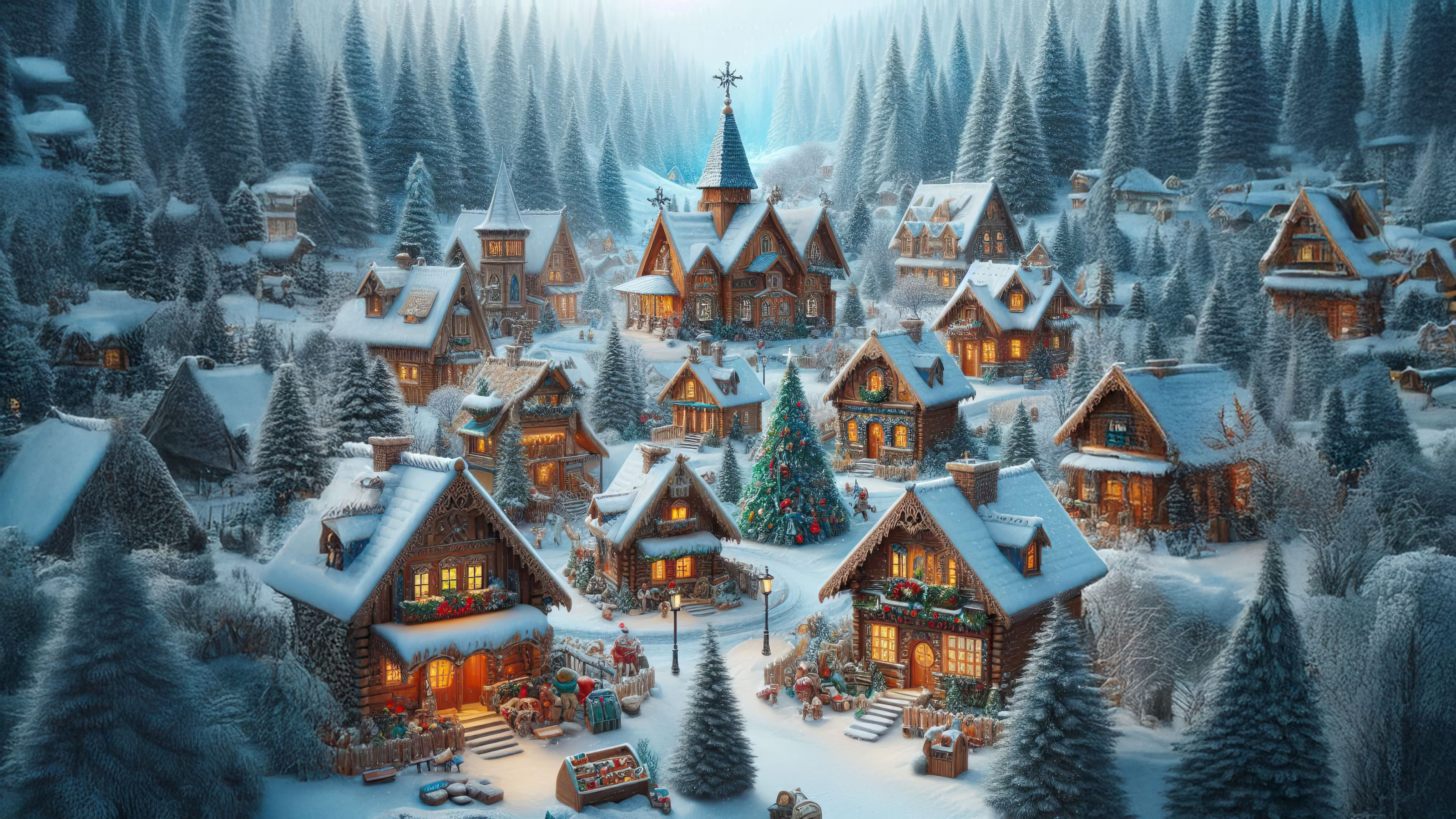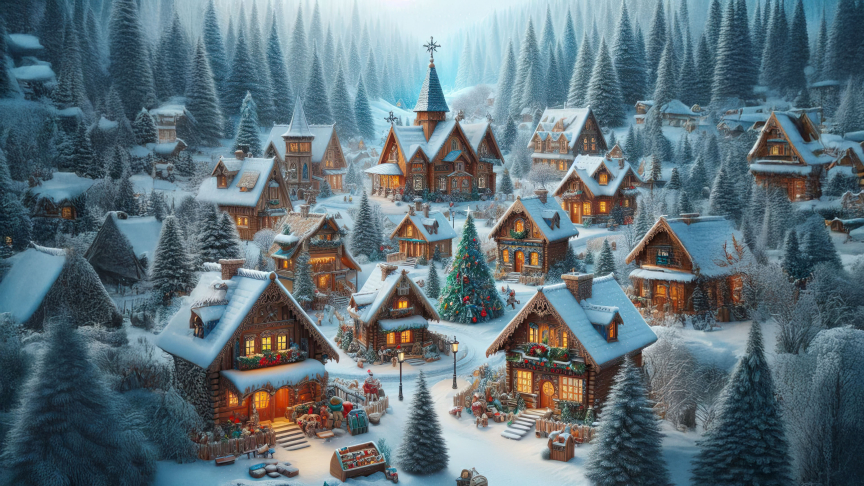 - A grand Christmas tree at the center of the village.