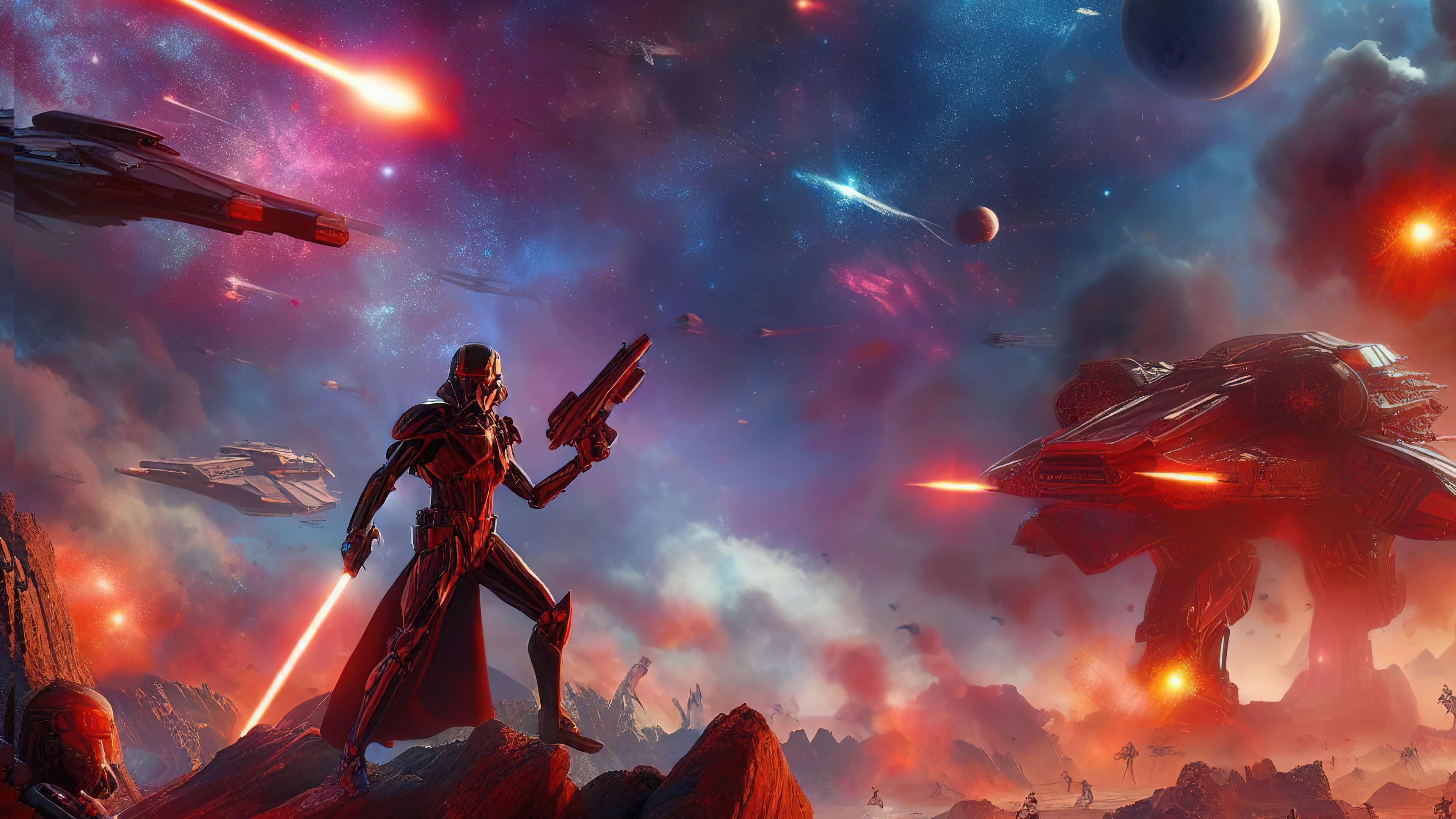 Experience the intensity of battle among the stars with this wallpaper showcasing a fantasy space fight. As the fighter confronts cosmic adversaries, every moment is charged with adrenaline and excitement, inviting you to join the fray.