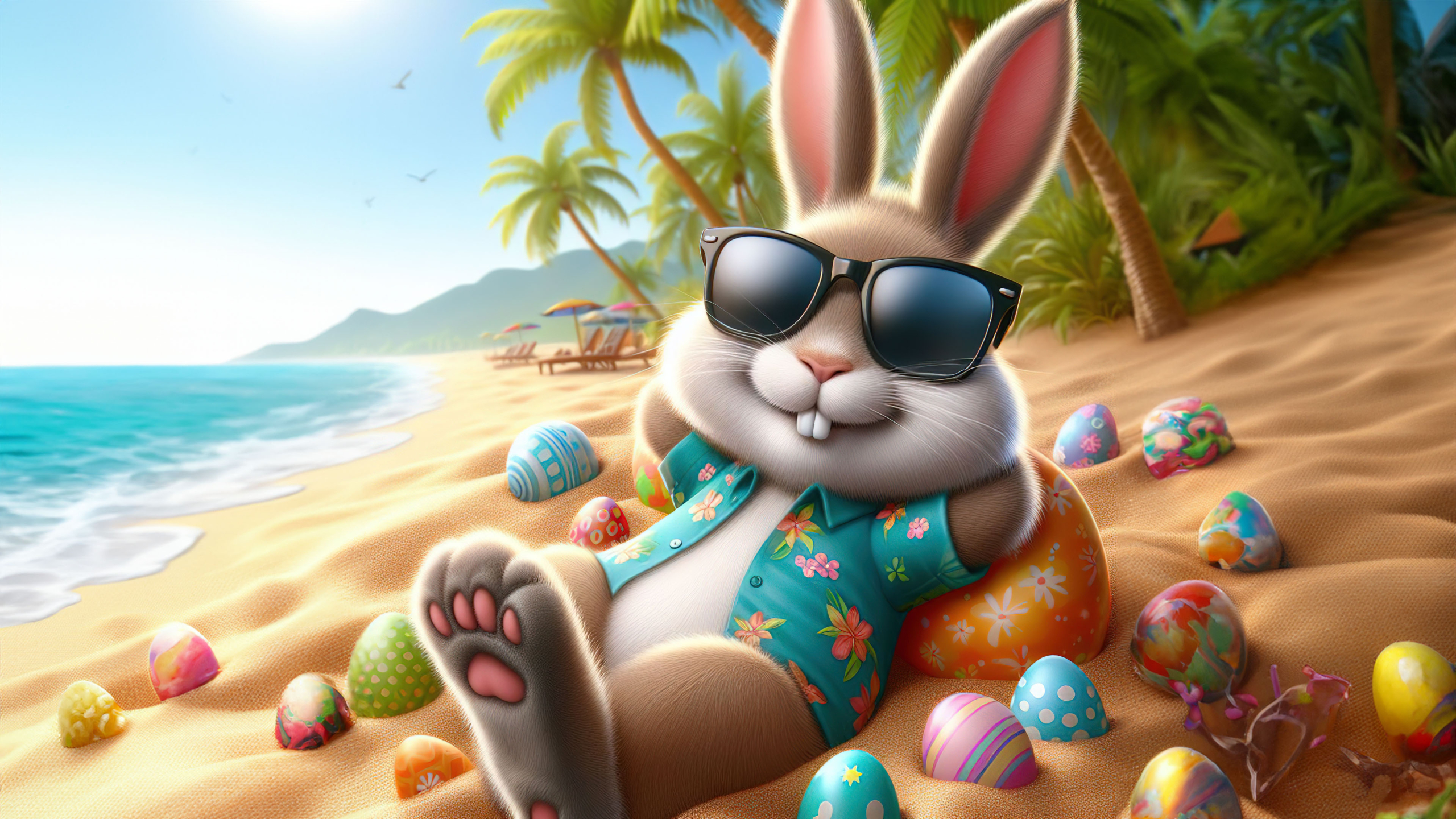 Celebrate Easter with this light-hearted and fun wallpaper, which captures the essence of the holiday in a unique and memorable way. Whether you're a fan of beach vacations or simply love Easter festivities, this wallpaper is sure to bring a smile to your face.