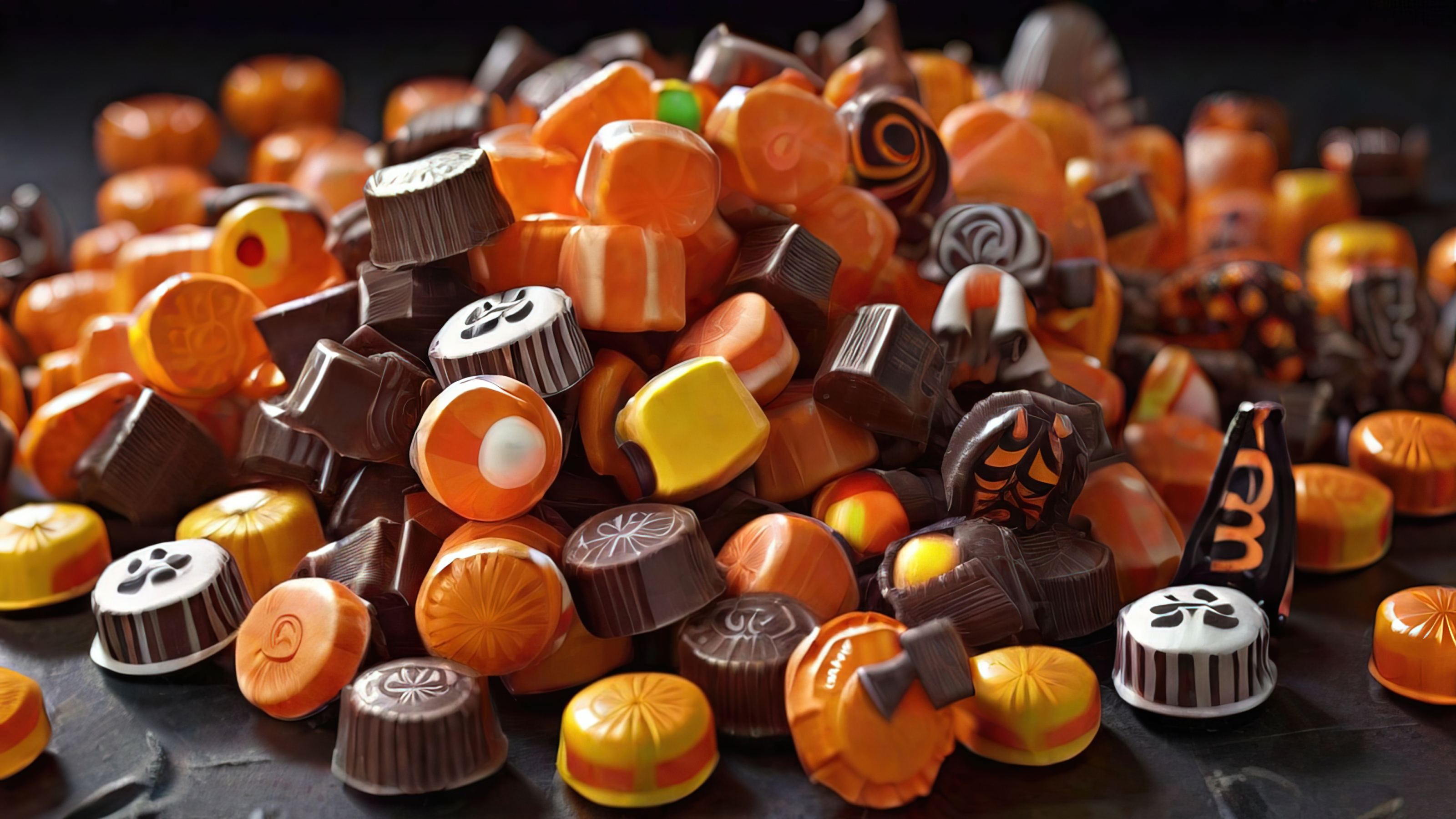 Transform your digital space into a Halloween haven by setting this wallpaper as your background. The delectable candies bring a touch of sweetness and joy to your screen, creating a delightful ambiance.