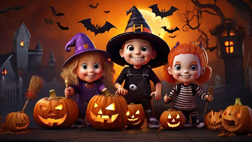 Get into the Halloween spirit with this charming wallpaper showcasing kids with pumpkins. Whether they're carving jack-o'-lanterns or preparing for a night of trick-or-treating, these youngsters are ready for some spooky fun. Let this wallpaper bring the festive atmosphere of Halloween into your home or device, adding a touch of whimsy and excitement to your celebrations.