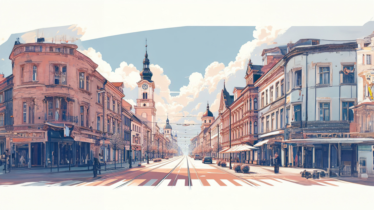 Transform your desktop into a pictorial journey down a nostalgically serene city street. Our wallpaper captures the essence of historic urban design with modern artistic flair.