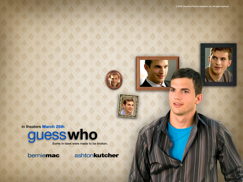 Guess Who Wallpapers are about movie: Percy Jones ({Bernie Mac}) is taking no chances with his daughter Theresa's ({Zoe Saldana}) future. Even before he meets Simon Green, her latest boyfriend, Percy has him checked out. On paper, he passes with flying colors - great job, good investments and a promising future. Not like the other losers she's dated in the past. But there's one thing the credit report didn't tell him. Simon Green ({Asthon Kutcher}) is white. Not that there's anything wrong with that. Unless, of course, Simon wants to marry his daughter. Which he does.