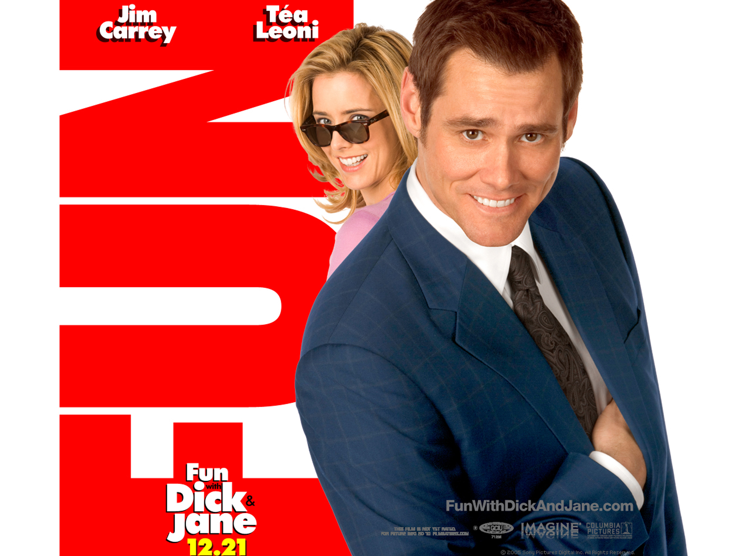 In Columbia Pictures' larcenous romantic comedy "Fun with Dick and Jane," Dick (Jim Carrey) and Jane (Téa Leoni) are in love and living the American dream - until one day it becomes an American nightmare. When the company Dick works for becomes involved in an Enron-like scandal and he is confronted with the prospect of losing everything, Dick and Jane are forced to bag, borrow and steal to get it all back.