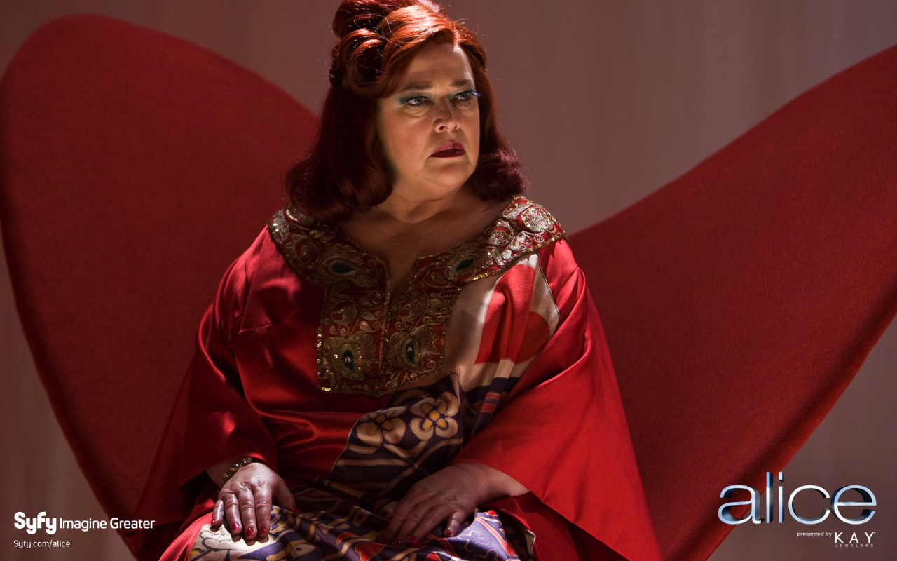 Using the classic Lewis Carroll books Alice's Adventures in Wonderland and Through the Looking-Glass as a jumping off point, writer/director Nick Willing has created the modern-day story of Alice Hamilton (Caterina Scorsone), a fiercely independent twenty-something who suddenly finds herself on the other side of a looking glass. She is a stranger in an outlandish city of twisted towers and casinos built out of playing cards, all under the rule of the deliciously devilish Queen of Hearts (Oscar winner Kathy Bates) who's not very happy about Alice's arrival.