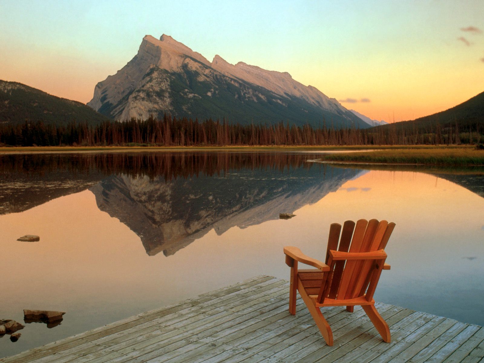 Vermillion Lake Escape Mount Rundle Reflected
