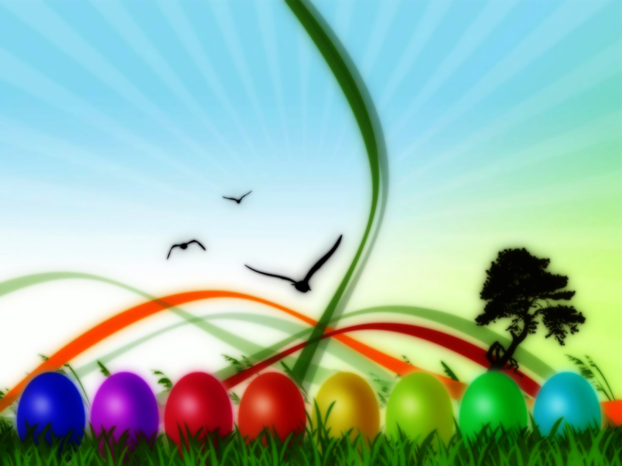Easter Eggs And Birds