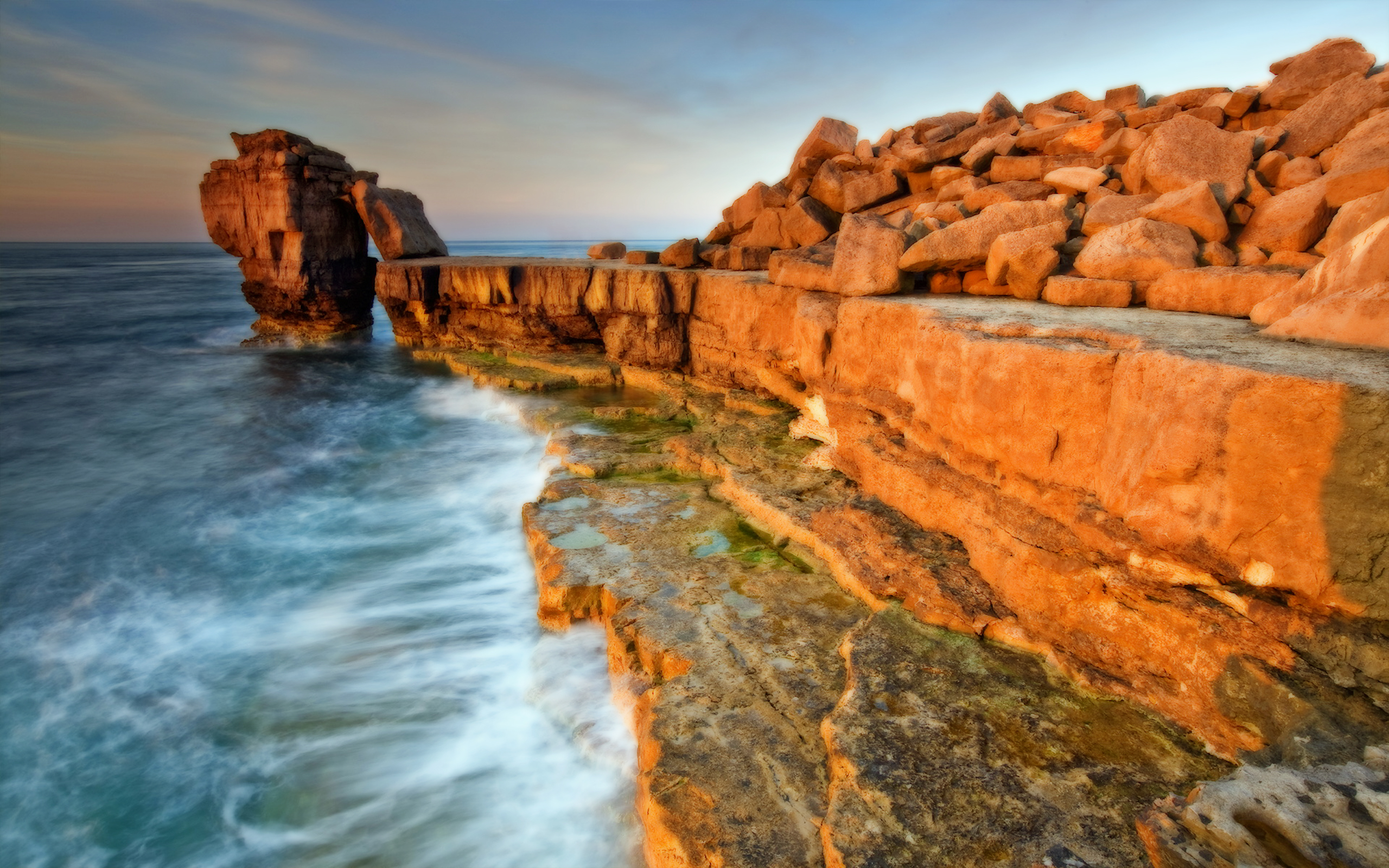 Escape to serene coastal vistas where rolling waves meet the land in perfect harmony. Our collection features wallpapers that capture the peaceful allure of beaches with gentle tides, undisturbed shorelines, and the distant call of seagulls.