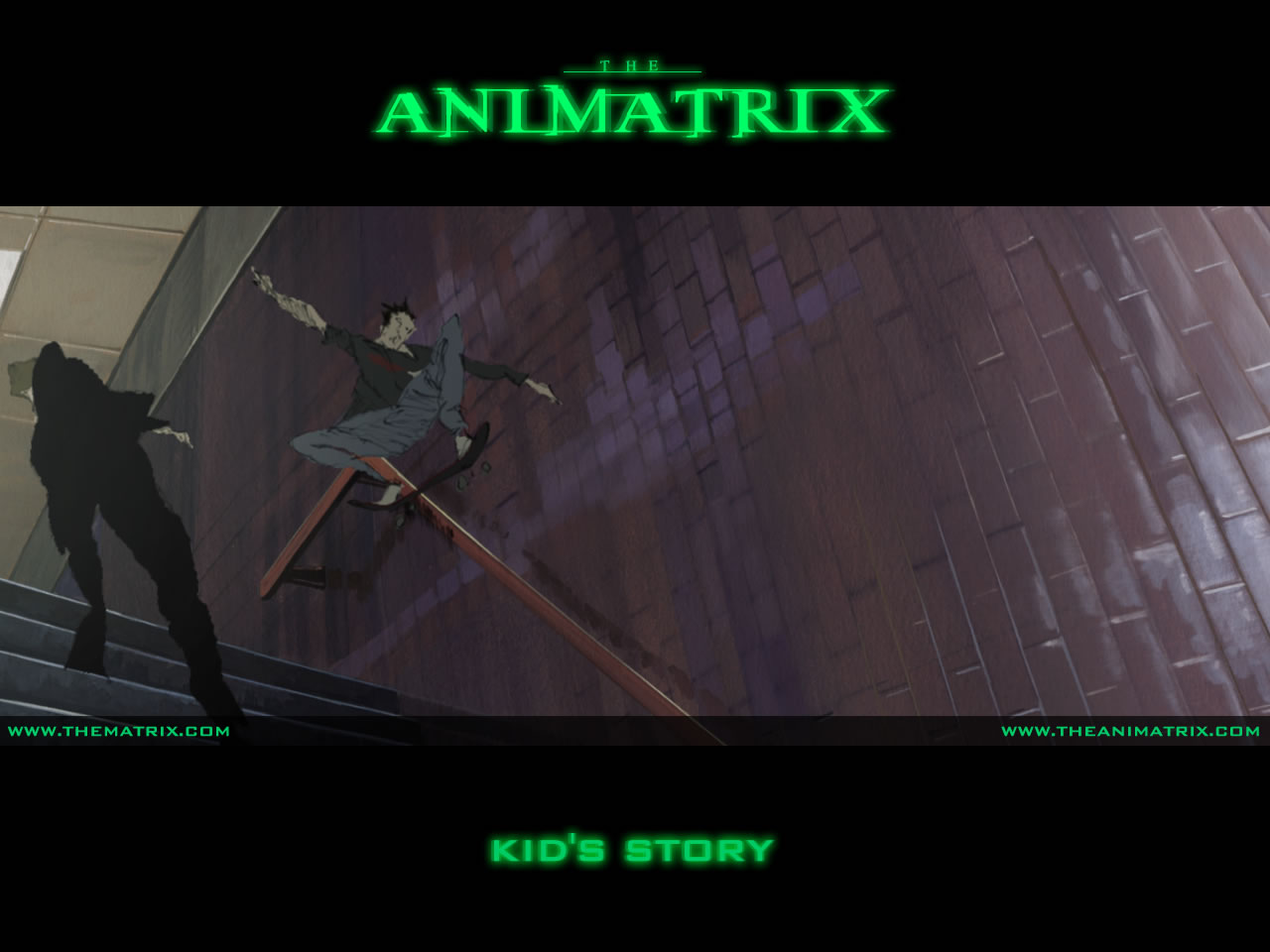 Anthology of nine short anime (Japanese animation) films tied in to the 1999 blockbuster "The Matrix" and its sequels. "Final Flight of the Osiris": The crew of the hovercraft Osiris attempt to warn their city of an imminent attack. "The Second Renaissance, Parts 1 & 2": The story behind the war between man and the machines, how mankind scorched the sky, and the creation of the Matrix. "Kid's Story": A teenager is contacted by Neo, and manages to escape the Matrix. "Program": Two warriors battle in a samurai training simulation when one decides to betray his crewmates and re-enter the Matrix. "World Record": A champion sprinter manages to break free of the Matrix by sheer physical effort during a record attempt. "Beyond": A young girl searching for her cat discovers a haunted house caused by a glitch in the system. "A Detective Story": Private investigator Ash tracks a hacker named Trinity through the looking glass. "Matriculated": A group of humans capture a machine scout and insert it into a 'human matrix'. (www.imdb.com)