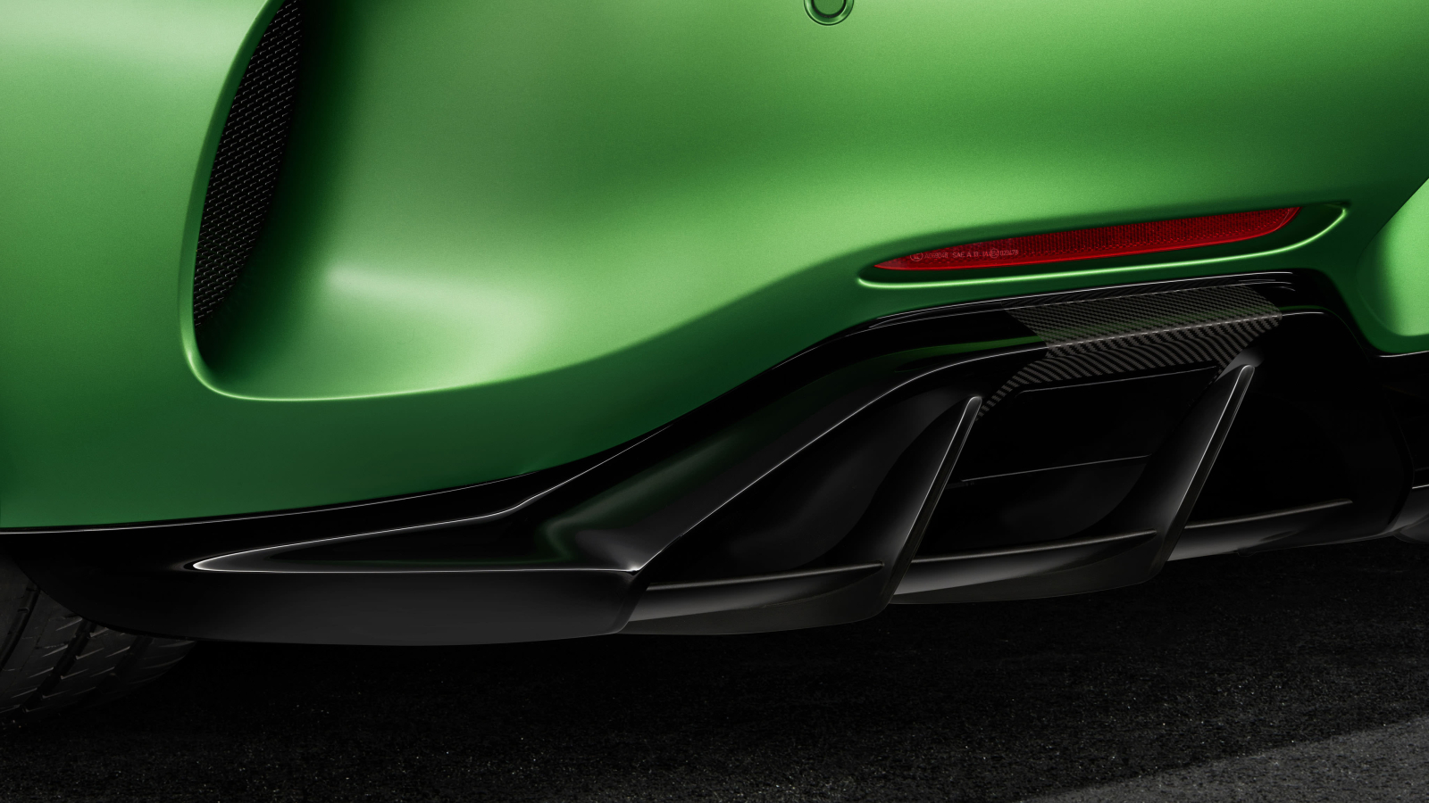 From the world's most demanding racetrack directly onto the road: Never before has Mercedes‑AMG packed so much motorsport technology into a production vehicle than into the new AMG GT R. The front-mid-engine concept with transaxle, the twin-turbo V-8 engine rated at 430 kW/585 hp, the extensively modified suspension, the new aerodynamics and the intelligent lightweight construction lay the foundations for an especially dynamic driving experience. Even from afar, the exclusive "AMG green hell magno" special paintwork leaves no doubt as to the sports car's origin, having spent most of its development time in the "Green Hell" of the Nurburgring racetrack. Wider front and rear wings allow an increased track width for optimum grip and even higher cornering speeds.