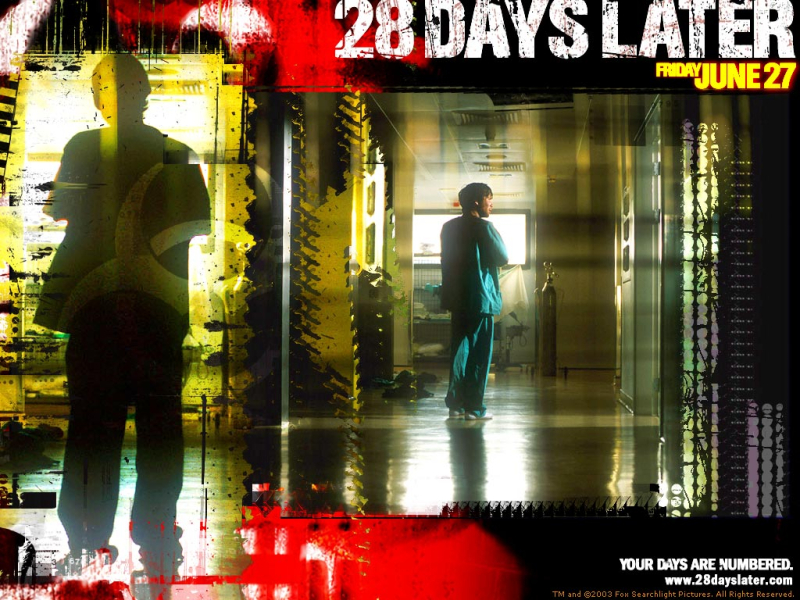 A powerful virus is unleashed on the British public following a raid on a primate research facility by animal rights activists. Transmitted in a drop of blood and devastating within seconds, the virus locks those infected into a permanent state of murderous rage. Within 28 days the country is overwhelmed and a handful of survivors begin their attempts to salvage a future, little realizing that the deadly virus is not the only thing that threatens them... (Source: comingsoon.net)