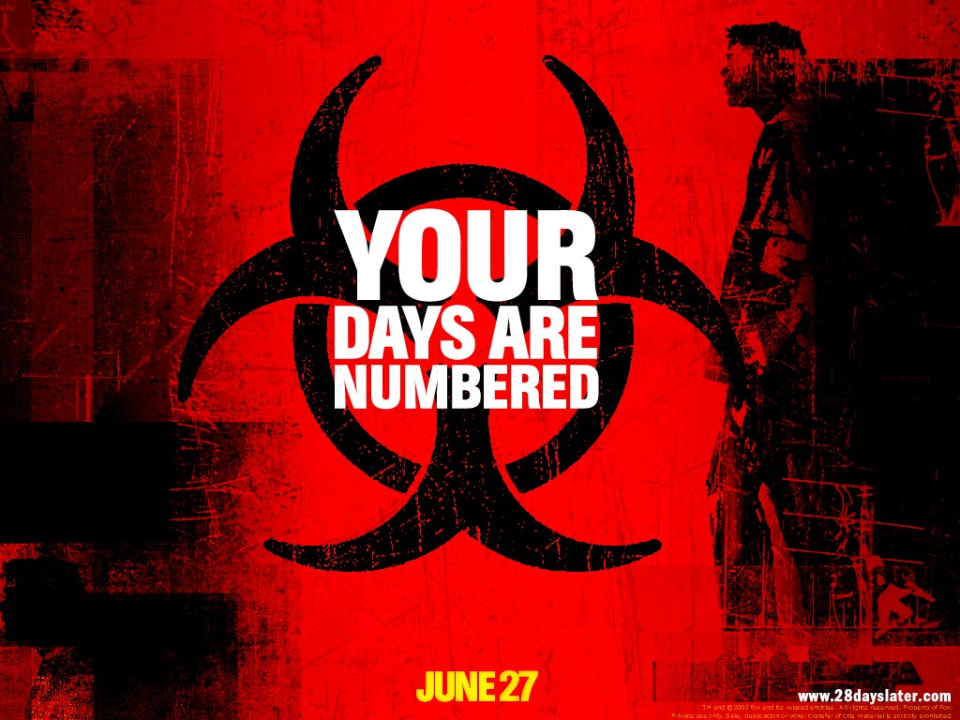 A powerful virus is unleashed on the British public following a raid on a primate research facility by animal rights activists. Transmitted in a drop of blood and devastating within seconds, the virus locks those infected into a permanent state of murderous rage. Within 28 days the country is overwhelmed and a handful of survivors begin their attempts to salvage a future, little realizing that the deadly virus is not the only thing that threatens them... (Source: comingsoon.net)