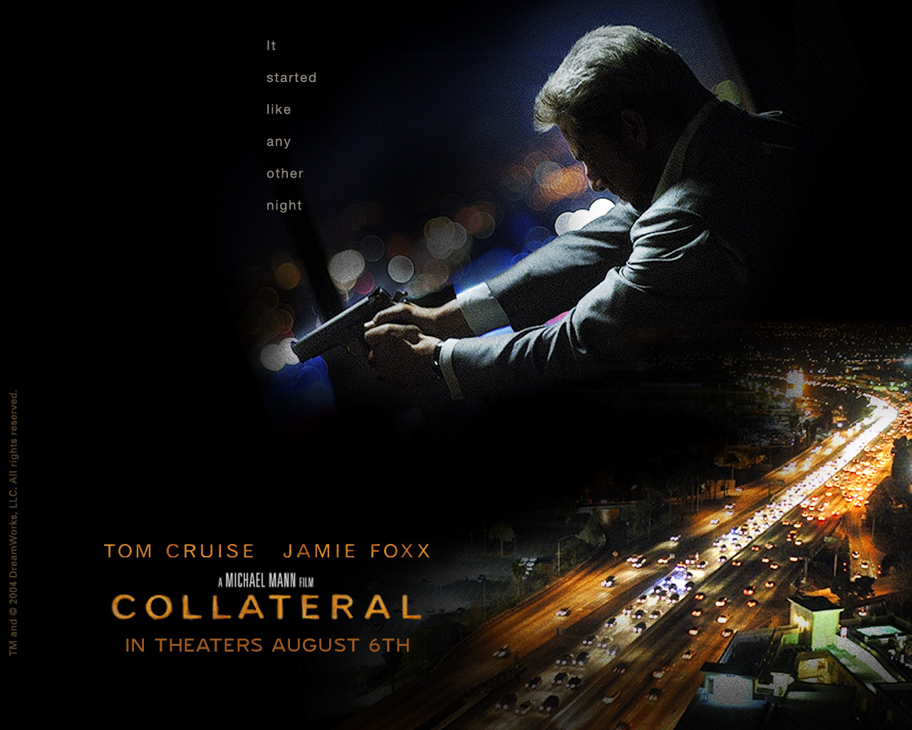 Max (Foxx) has lived the mundane life of a cab driver for 12 years. The faces have come and gone from his rearview mirror, people and places he's long since forgotten...until tonight. Vincent (Cruise) is a contract killer. When an offshore narcotrafficking cartel learns they're about to be indicted by a federal grand jury, they mount an operation to identify and kill the key witnesses, and the last stage is tonight. Tonight, Vincent arrived in L.A...and five bodies are supposed to fall. Circumstances cause Vincent to hijack Max's taxicab, and Max becomes collateral-an expendable person in the wrong place at the wrong time. Through the night Vincent forces Max to drive him to each assigned destination. And as the LAPD and FBI race to intercept them, Max and Vincent's survival becomes dependent on each other in ways neither would have imagined. (Source: ComingSoon)