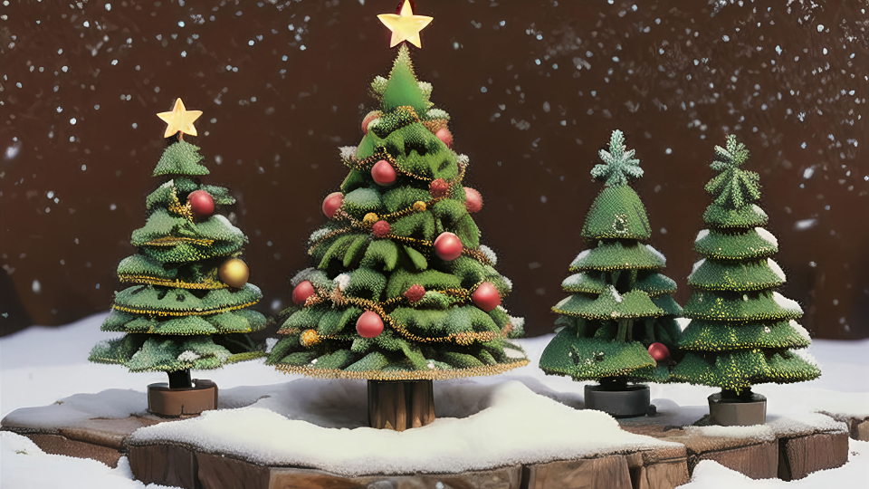 Bring the spirit of miniature Christmas to your digital space. Download our enchanting wallpaper to immerse yourself in the charm of a collection of small Christmas trees adorned with festive decorations, showcasing petite festive elegance and capturing the magic of the holiday season.