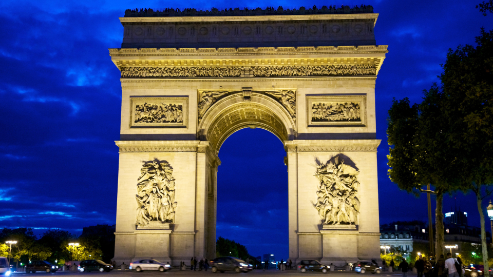 Admire the symbol of Paris with this wallpaper, showcasing the iconic Arc de Triomphe. Standing proudly at the center of Place Charles de Gaulle, it represents French national pride and commemorates the fallen soldiers of the French Revolutionary and Napoleonic Wars.