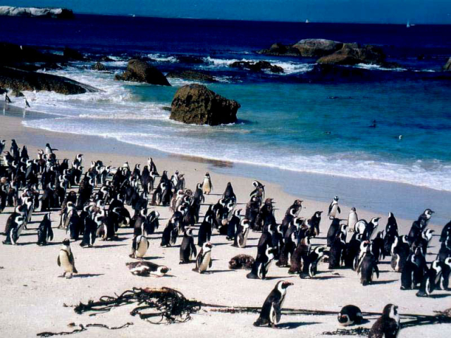 Penguins at Coast: Heading to Water