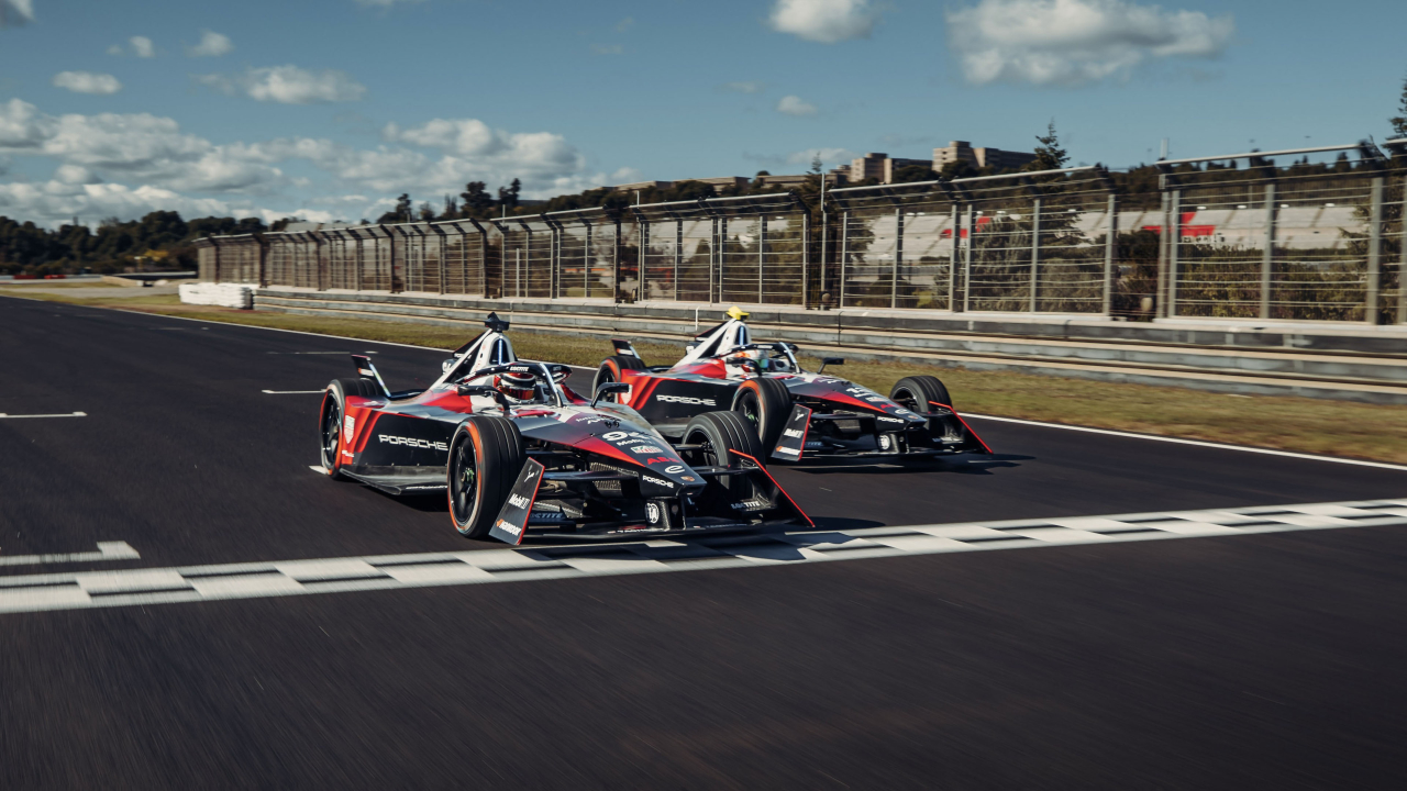 Porsche Formula E Car Duo on the Track Wallpaper