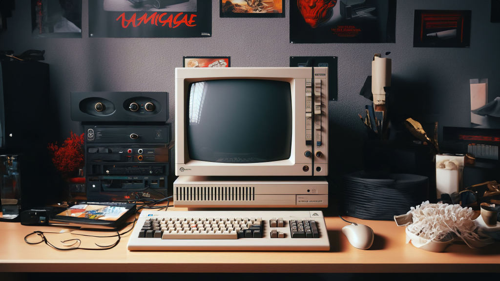 Transport your screen back in time with a classic setup featuring a retro computer on a desk. The vintage aesthetic adds a touch of nostalgia and sophistication to any device.
