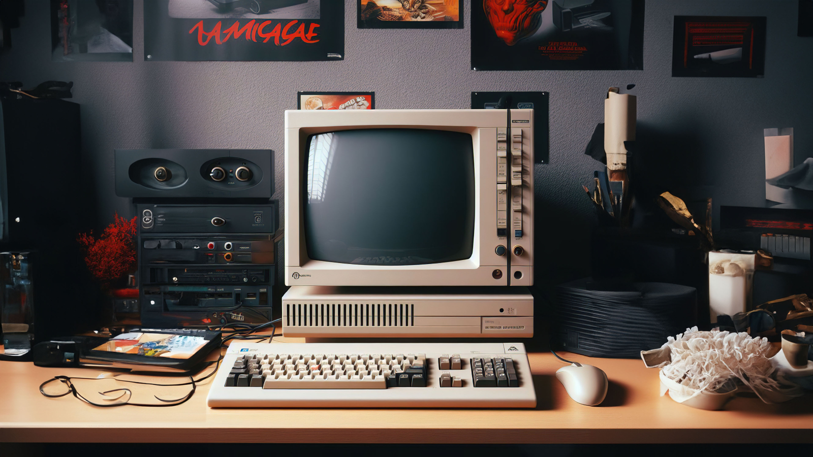 Retro Computer on the Desk Wallpaper