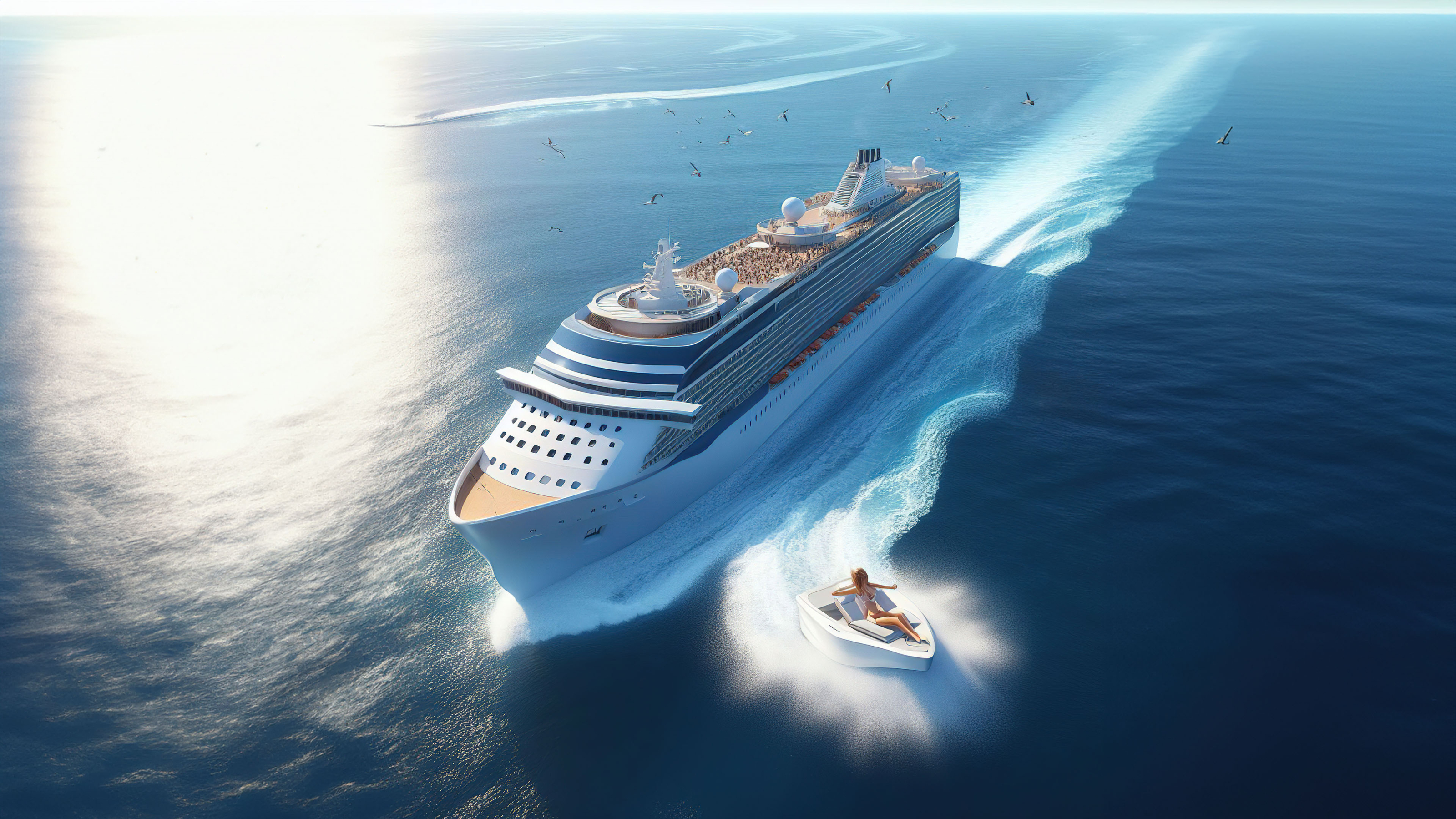 Our high-resolution wallpaper captures the opulence of cruising. Whether it's daydreaming about your next vacation or reminiscing about past sails, let this image elevate your screen's aesthetics with its depiction of luxury at sea.