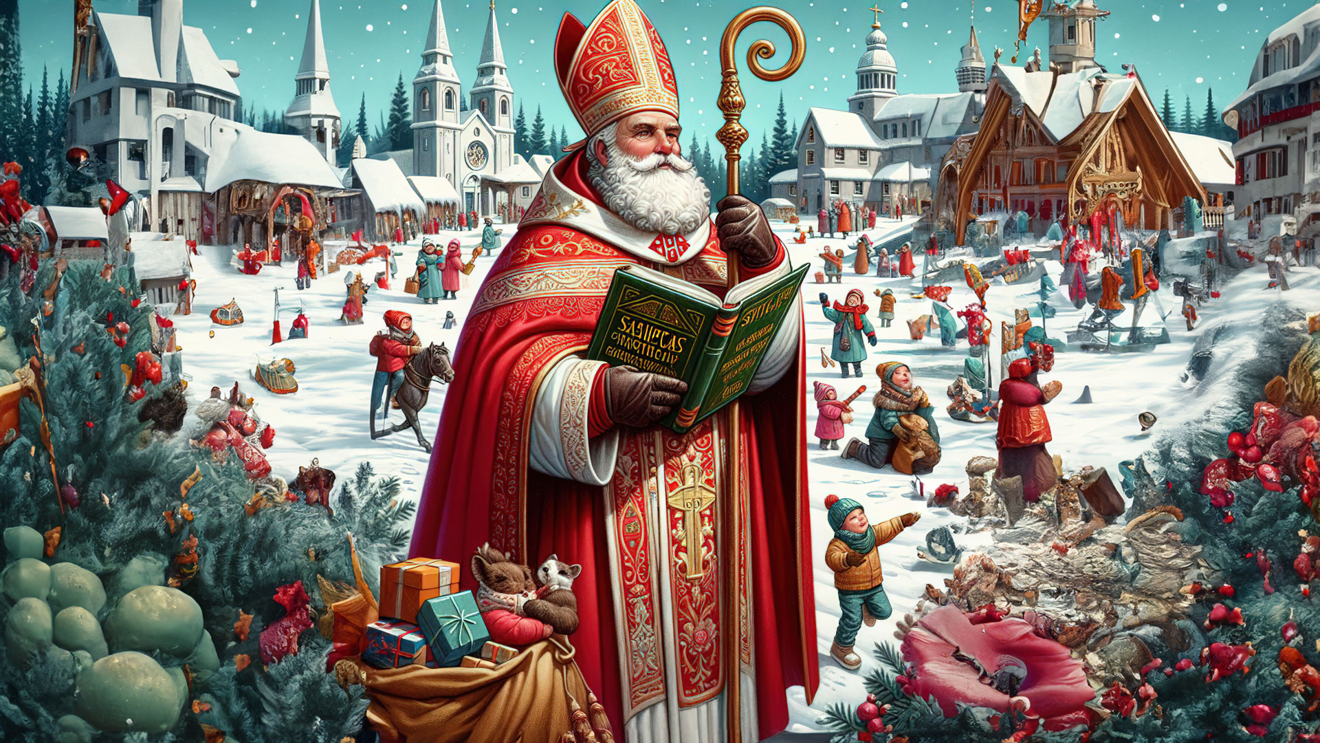 For an ideal viewing experience, consider naming the downloaded image with a filename like 'saint-nicholas-day-celebration.jpg' to reflect the joy, giving, and festive tradition captured in these holiday scenes.