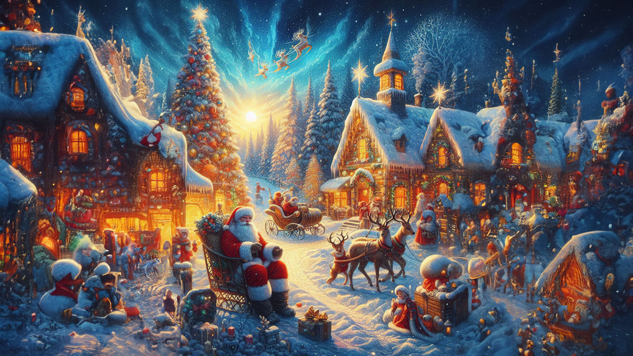 Immerse yourself in the serene scene as Santa Claus takes a tranquil moment before embarking on his annual Christmas Eve flight. Experience the magic of holiday preparations, the anticipation of the nightly journey, and the joyous spirit that fills the air during this special time of year.