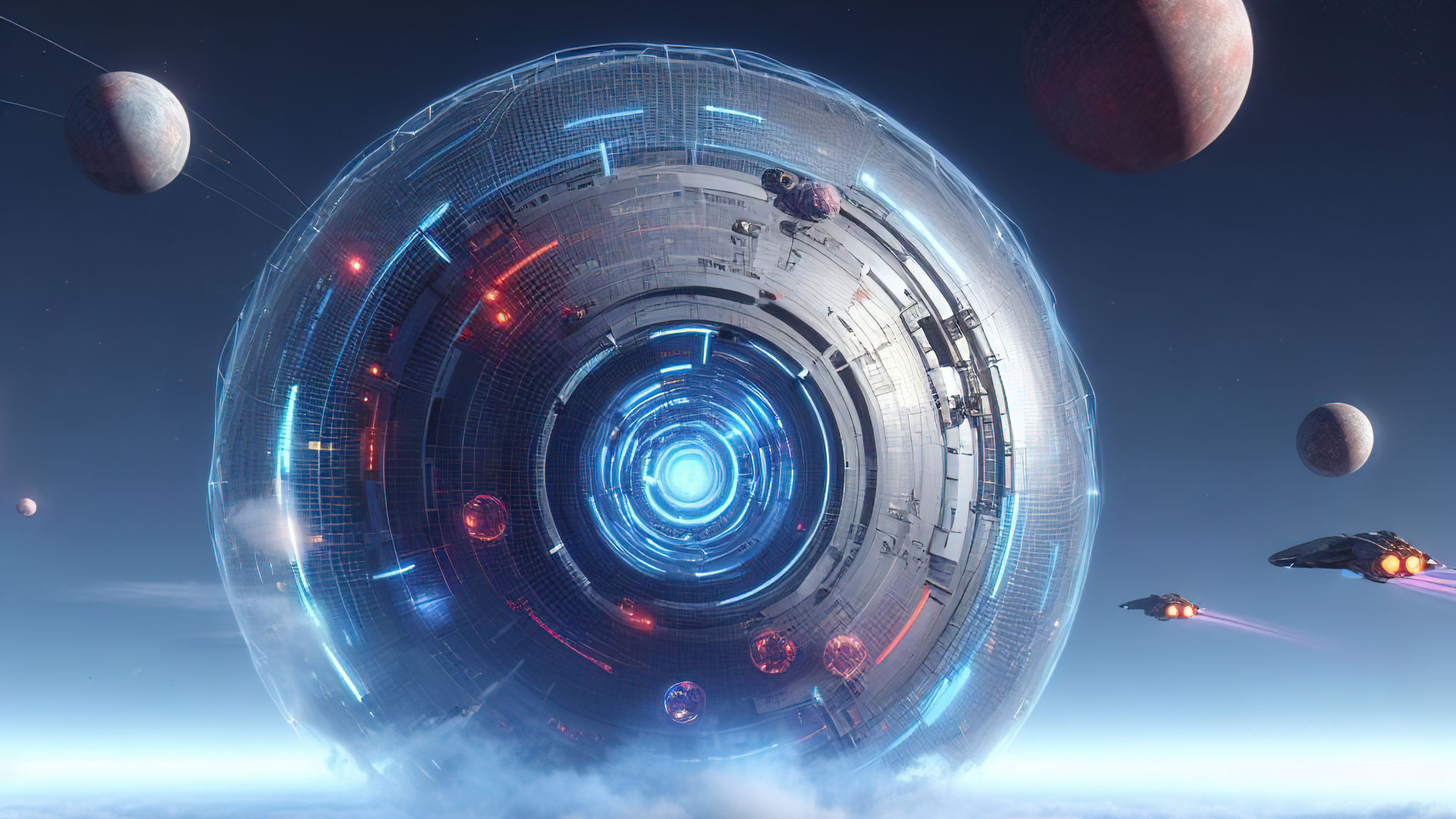 Immerse yourself in the galactic beauty of our Space Station wallpaper, featuring a rounded marvel suspended in the cosmos. The power ignition at its core symbolizes cutting-edge technology and futuristic design, creating a celestial haven for your digital space.