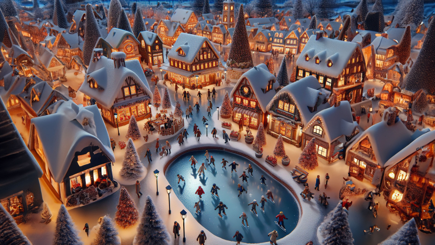 Experience the enchanting Christmas atmosphere by the frozen lake in a charming town, where children skate under evening lights and festive illumination. Immerse yourself in the joyful laughter, twinkling lights, and overall delightful spirit captured in this exclusive article, celebrating the magic of Christmas in a picturesque winter town.