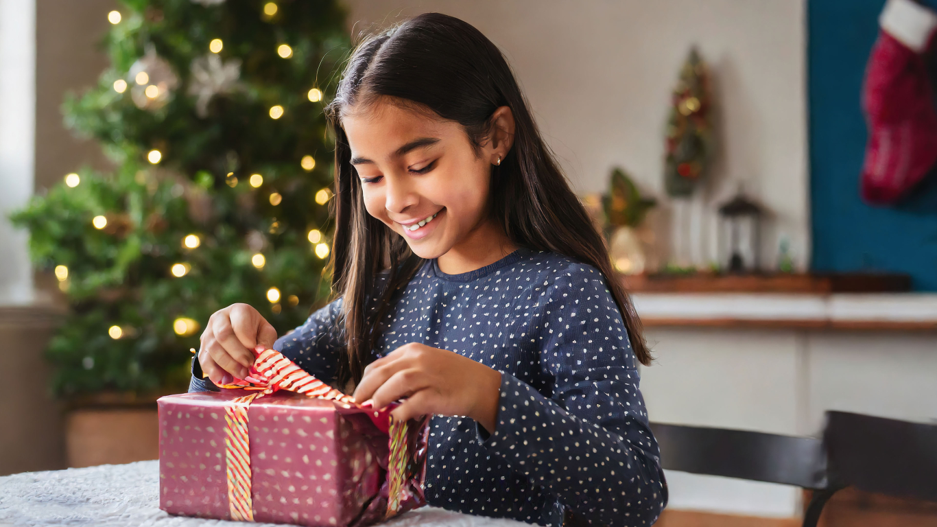 Unwrapping Joy: A Girl Opening Her Christmas Present