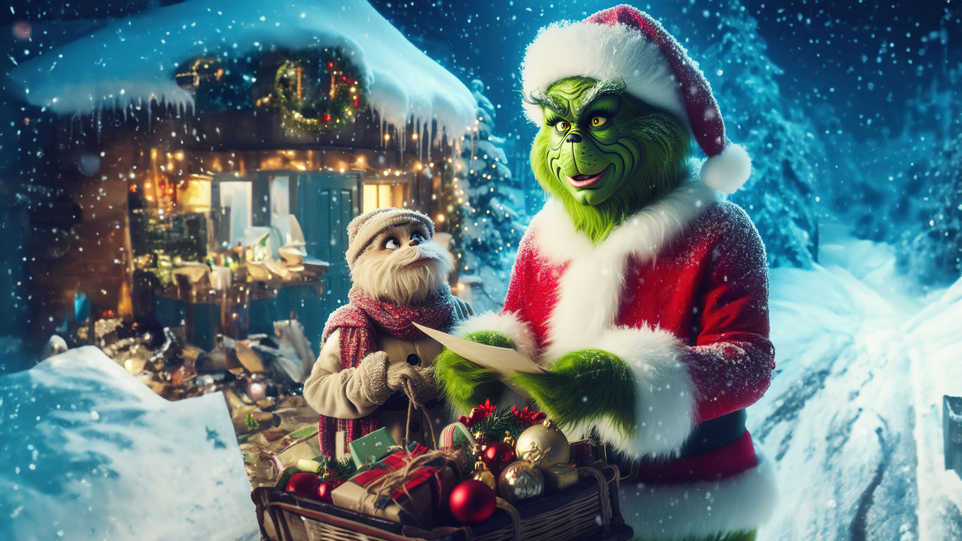 Marvel at the whimsy of the Grinch as he dons a Santa costume, bringing an unexpected twist to his iconic character. The green mischief-maker takes on a festive role, adding a touch of holiday magic to the scene.