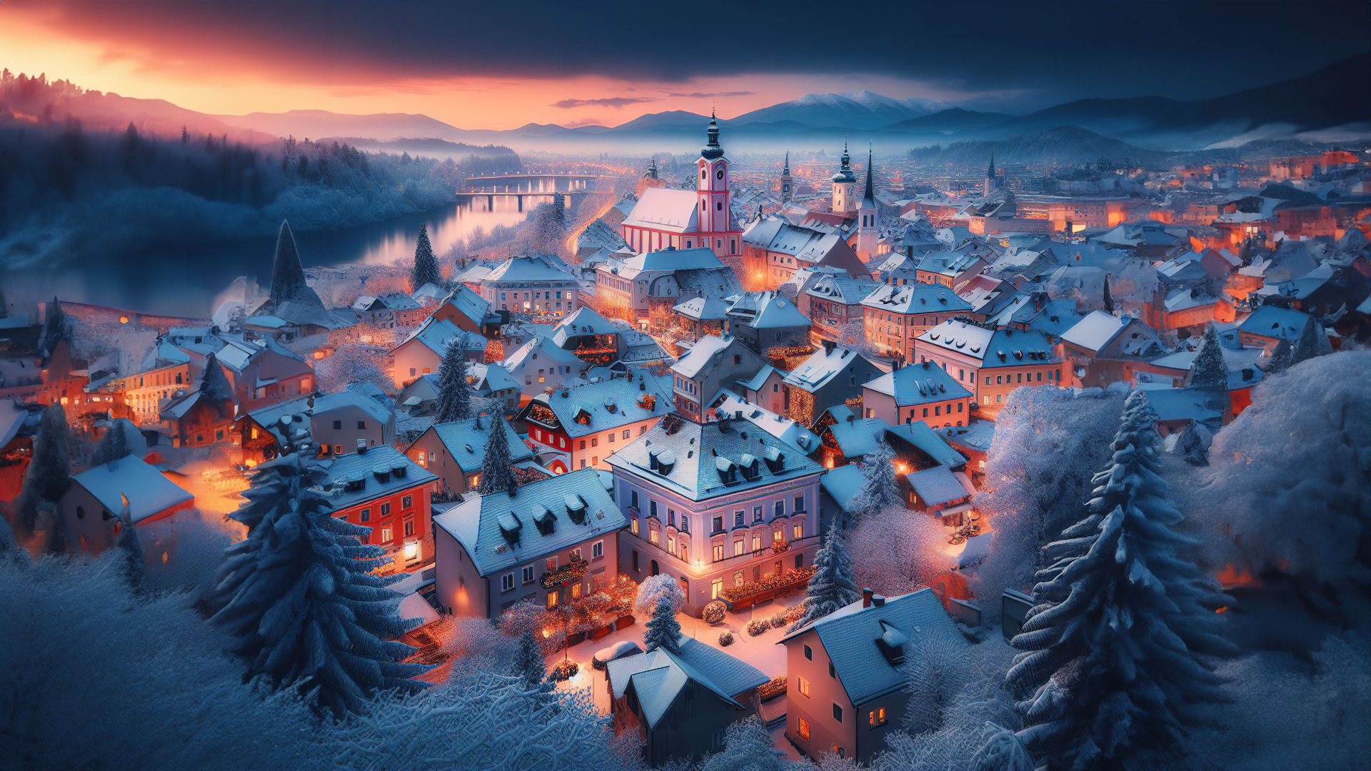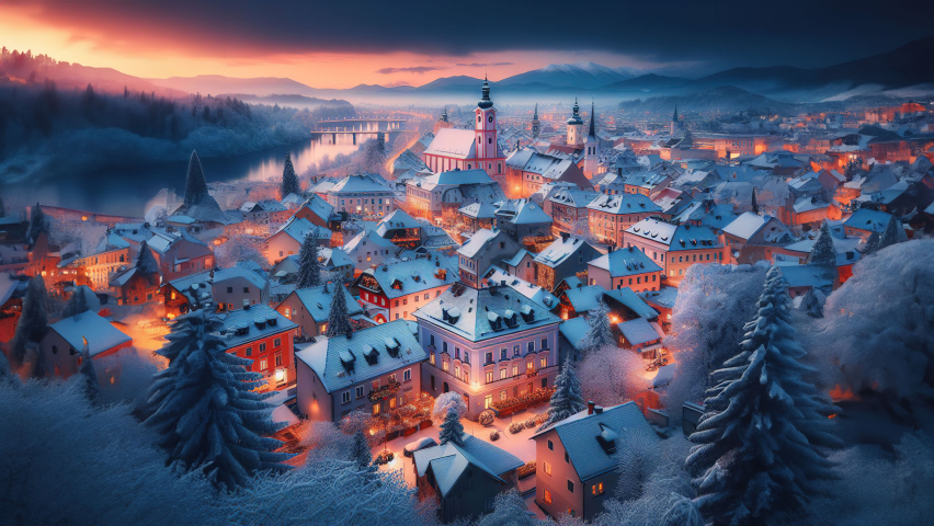 Take in the panoramic view of the winter metropolis. From the iconic skyline to the bustling city center, every corner is touched by the magic of winter. The reflections on glass facades and the twinkle of city lights add to the visual spectacle.