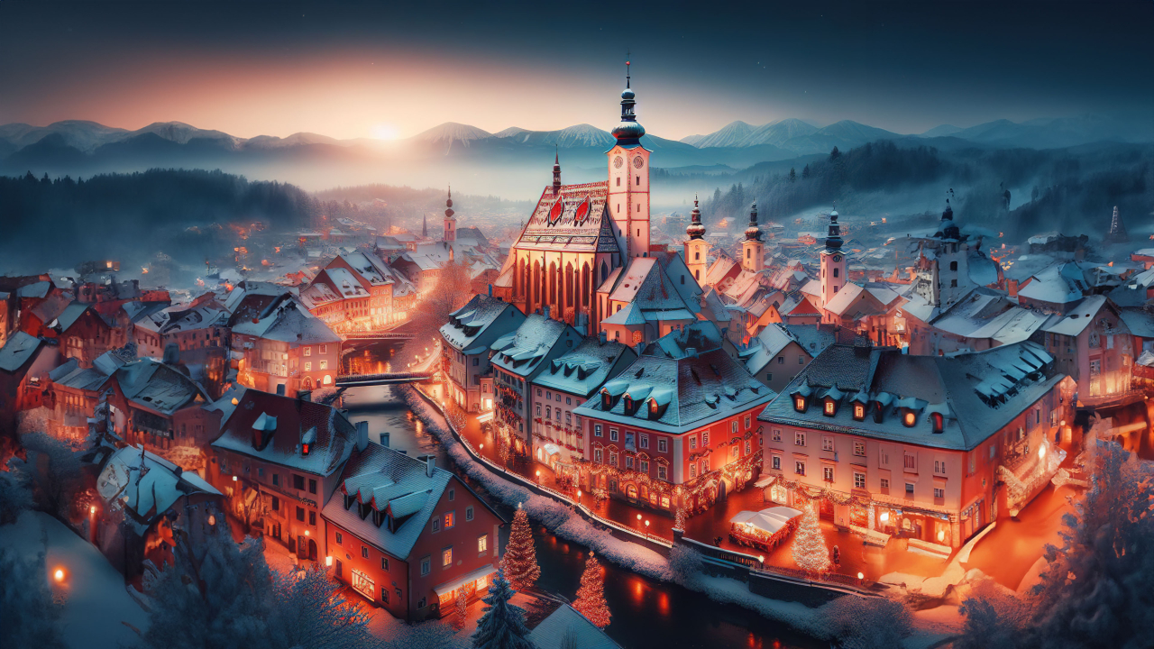 Elegant Winter Evening: Old City by the Snowy River